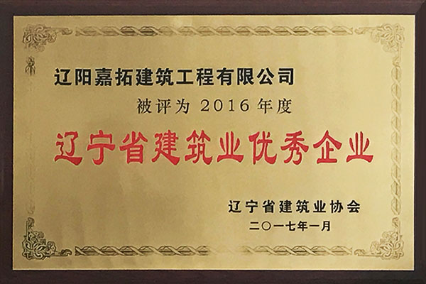 2016年度遼寧省建筑業(yè)優(yōu)秀企業(yè)